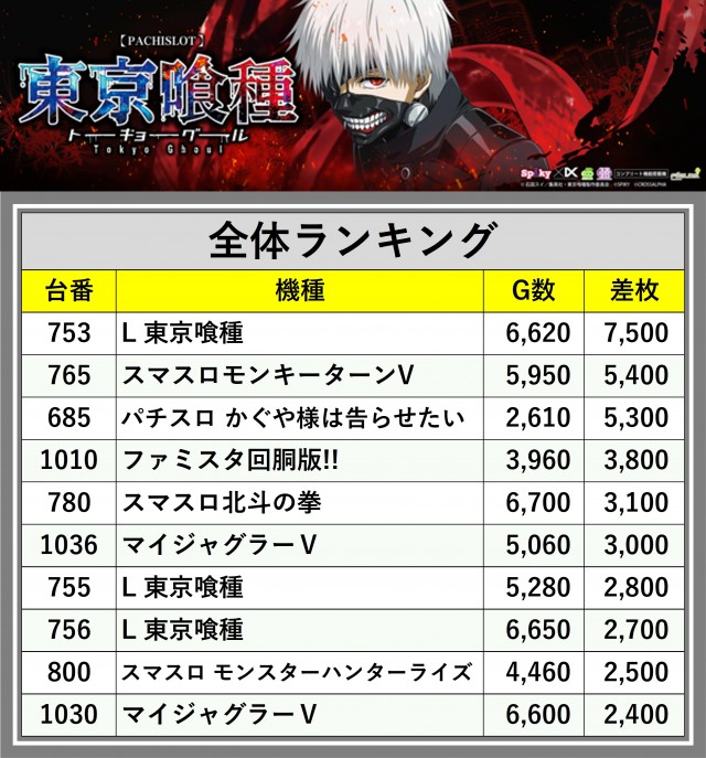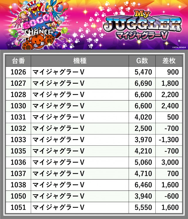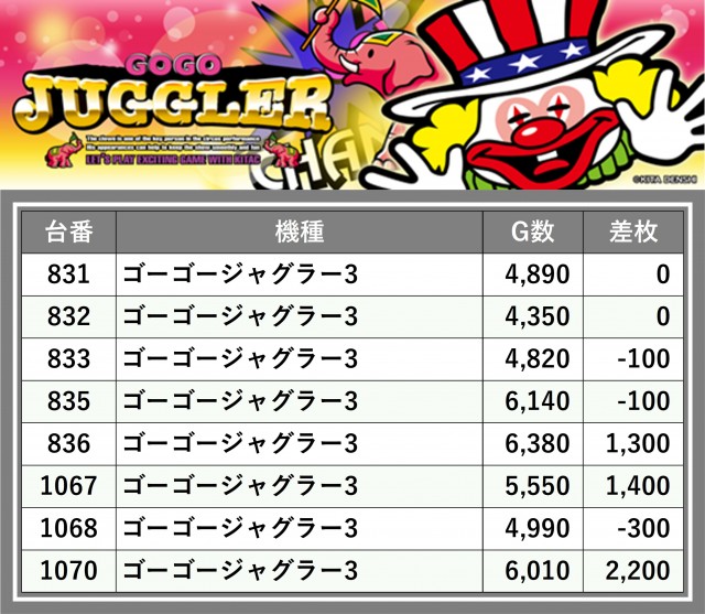厳選された取材対象機種をはじめ、その他スロット全体から好記録が飛び出した!プレイヤーが楽しんだ1日を下記データにて振り返ってみて欲しい。