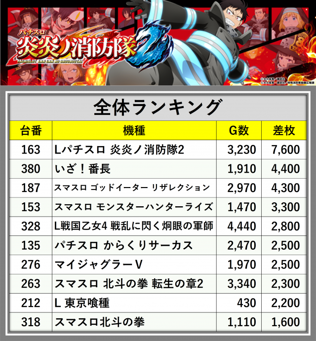厳選された取材対象機種をはじめ、その他スロット全体から好記録が飛び出した!プレイヤーが楽しんだ1日を下記データにて振り返ってみて欲しい。