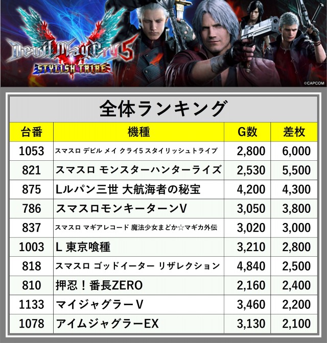 厳選された取材対象機種をはじめ、その他スロット全体から好記録が飛び出した!プレイヤーが楽しんだ1日を下記データにて振り返ってみて欲しい。