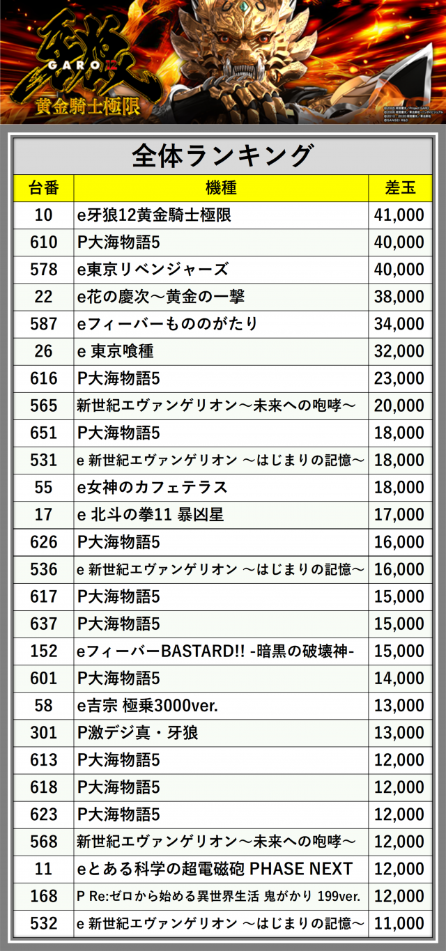 厳選された取材対象機種をはじめ、その他パチンコ全体から好記録が飛び出した!プレイヤーが楽しんだ1日を下記データにて振り返ってみて欲しい。