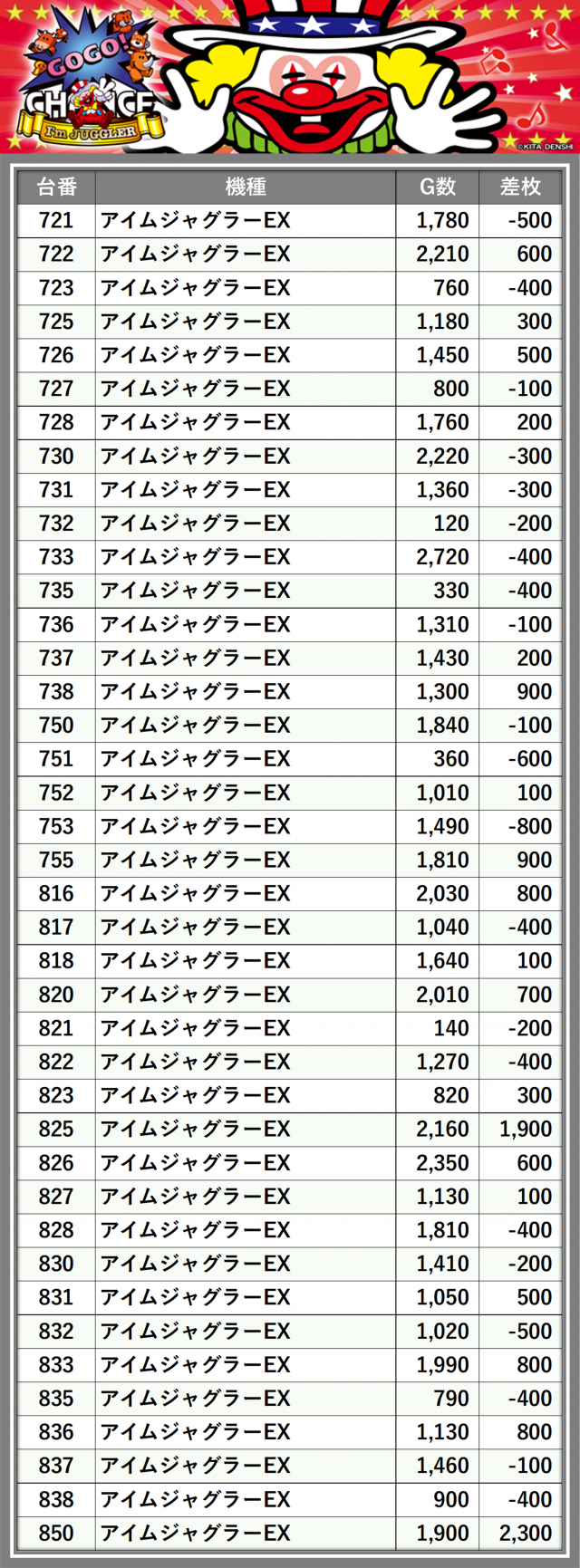 厳選された取材対象機種をはじめ、その他スロット全体から好記録が飛び出した!プレイヤーが楽しんだ1日を下記データにて振り返ってみて欲しい。