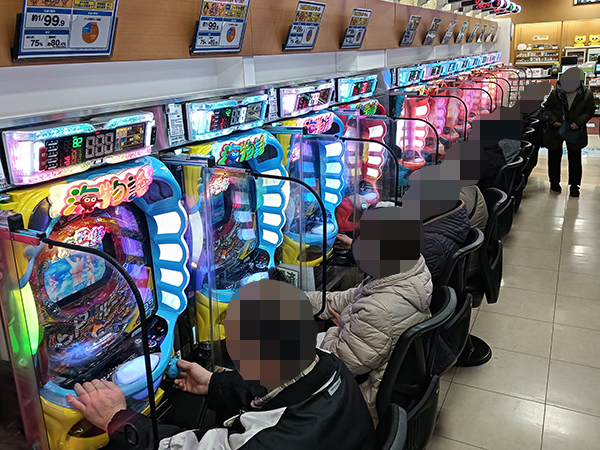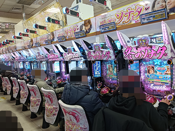 14時ごろの1円パチンコでは「PA海物語3R2スペシャル」や「ぱちんこ 冬のソナタ SWEET W HAPPY Version」といった甘デジが好評で、魅力的なシーンをシマの至る所で目にしている。