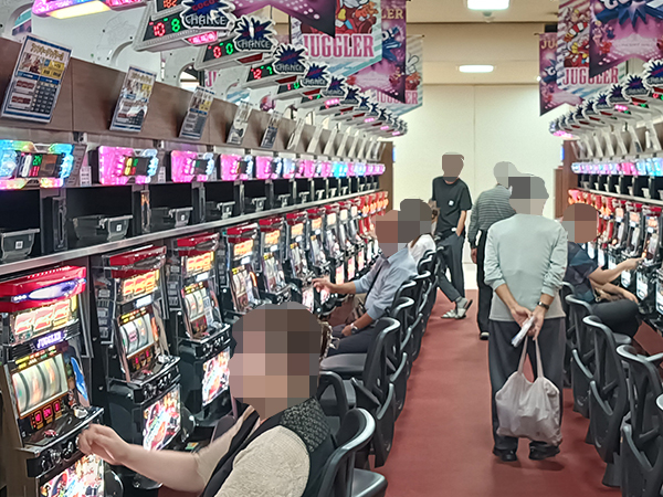 20円パチスロを見渡すと、「アイムジャグラーEX」や「ファンキージャグラー2」で理想的な展開を迎えたプレイヤーが見られ、シマ全体に華やかな光景が広がっていた。
