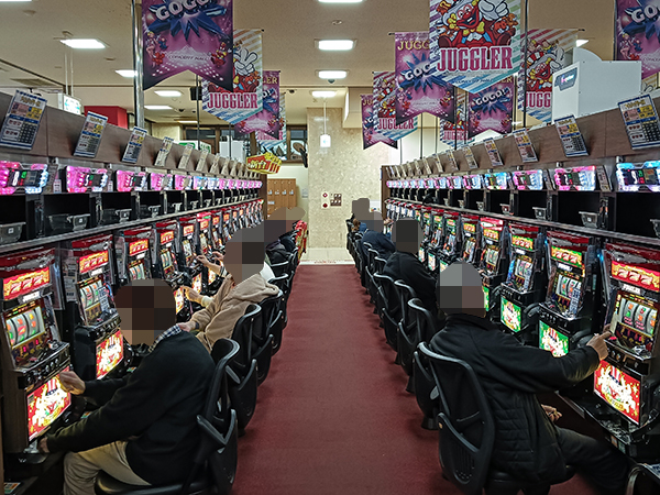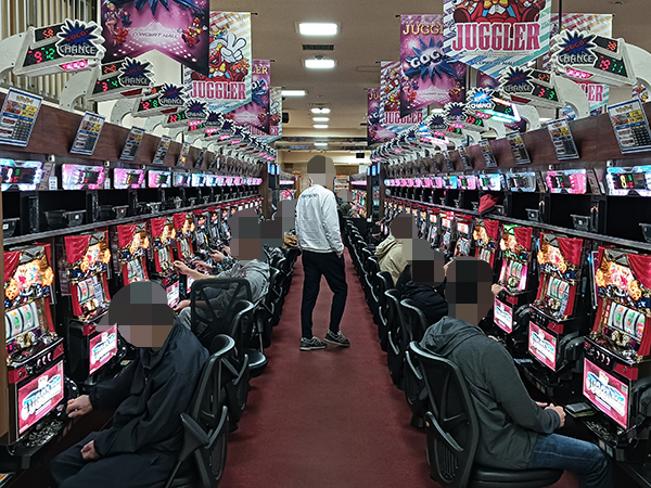 20円パチスロをチェックすると「マイジャグラーⅤ」や「アイムジャグラーEX」で好調なプレイヤーを確認。納得の表情がそこかしこで見られた。