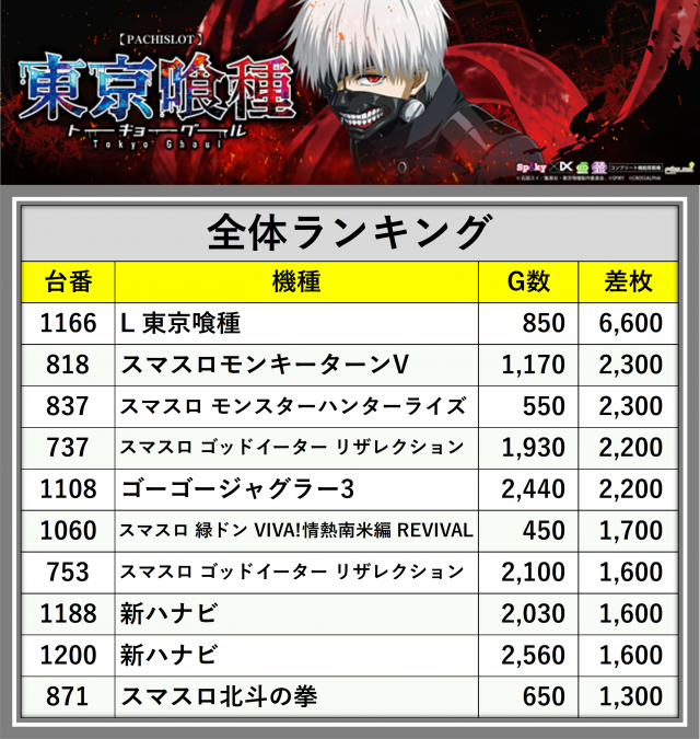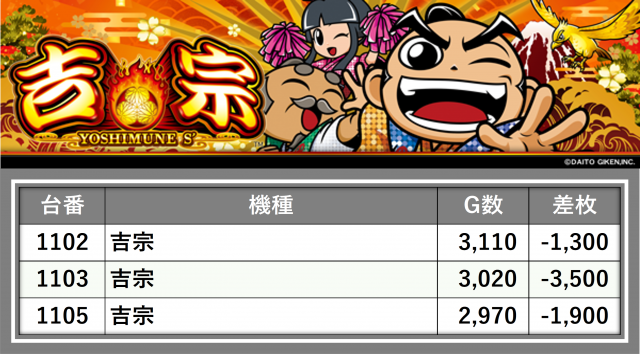 厳選された取材対象機種をはじめ、その他スロット全体から好記録が飛び出した!プレイヤーが楽しんだ1日を下記データにて振り返ってみて欲しい。