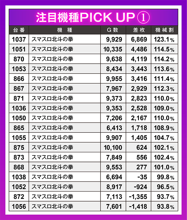 パチンカー&スロッターのテンションが嫌が応にも上昇する7月7日だけに、常連さんのハードルも高かったはず。しかしその期待にしっかり応えてくれた今回。スロでは『北斗』&『ゴージャグ』が強さを見せ、パチでは『エヴァ』シリーズが安定した結果を披露。7月7日に相応しい成績だったと言えよう。
