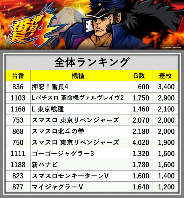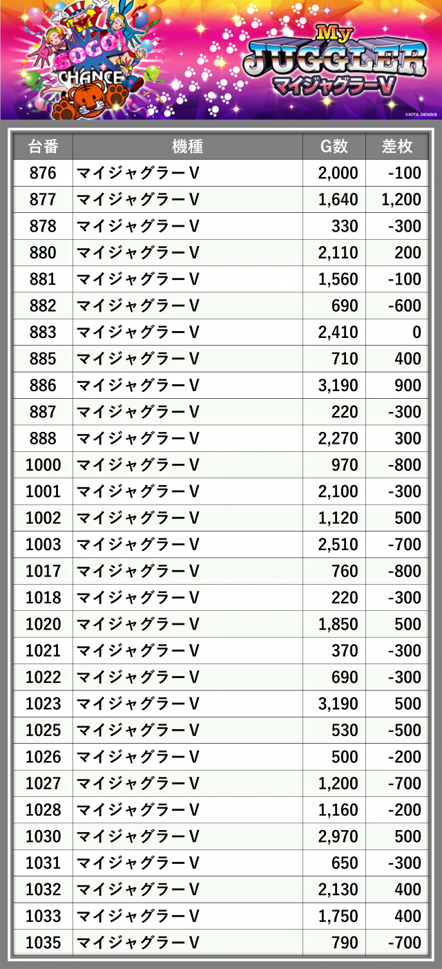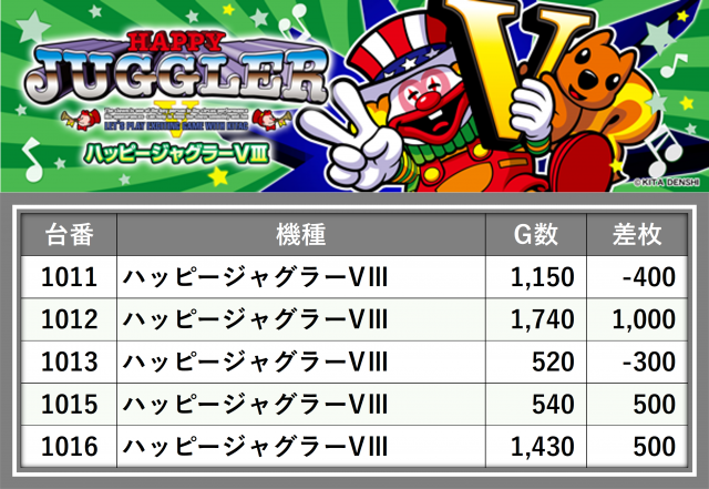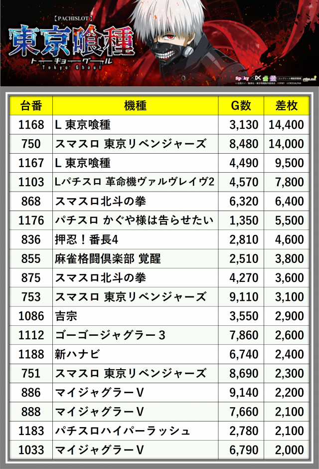 厳選された取材対象機種をはじめ、その他スロット全体から好記録が飛び出した!プレイヤーが楽しんだ1日を下記データにて振り返ってみて欲しい。
