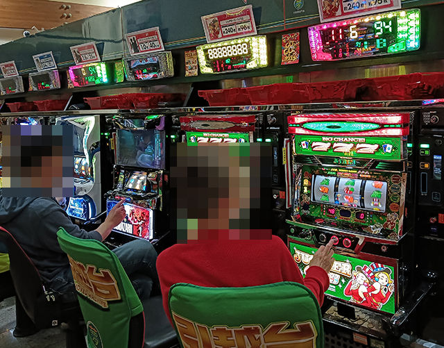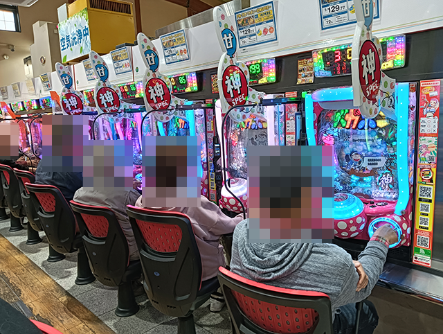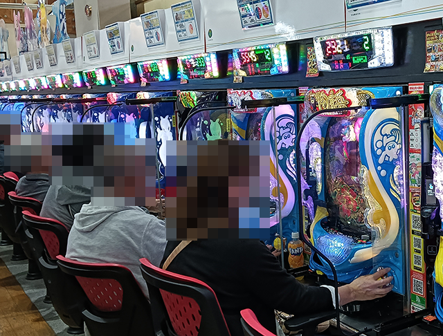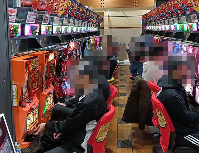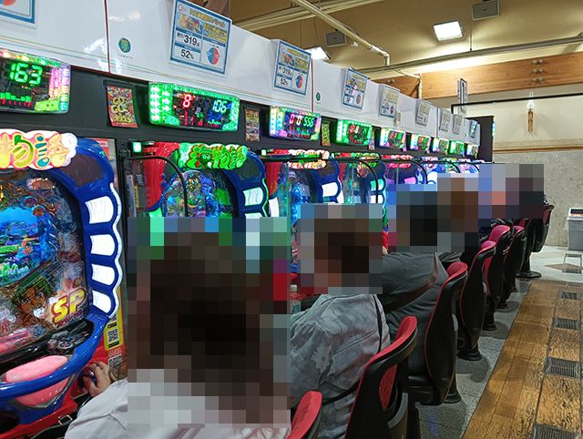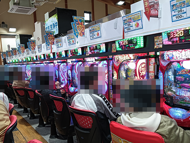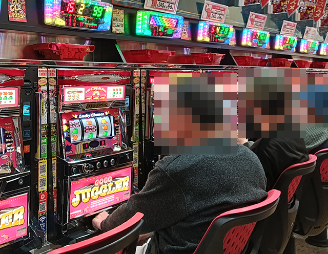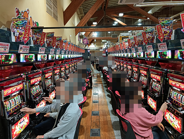 「アイムジャグラーEX」や「ゴーゴージャグラー3」が支持を集めており、シマ内はにぎわいをみせていた。