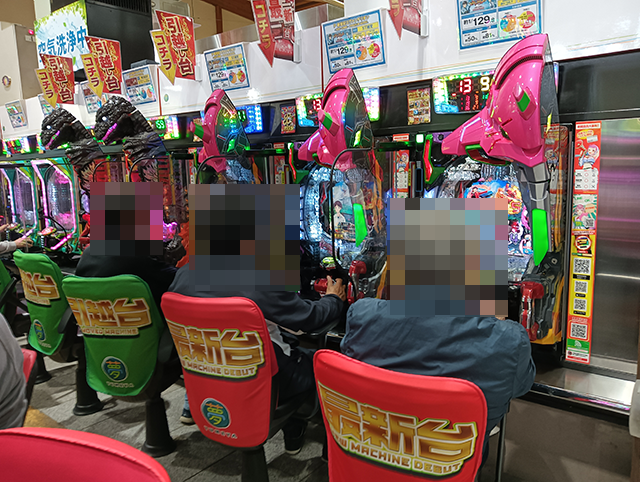 「P新世紀エヴァンゲリオン~未来への咆哮~PREMIUM MODEL」は満席、「P神・天才バカボン~甘神SPEC~」は空き台がひとつと稼働率が高い。
