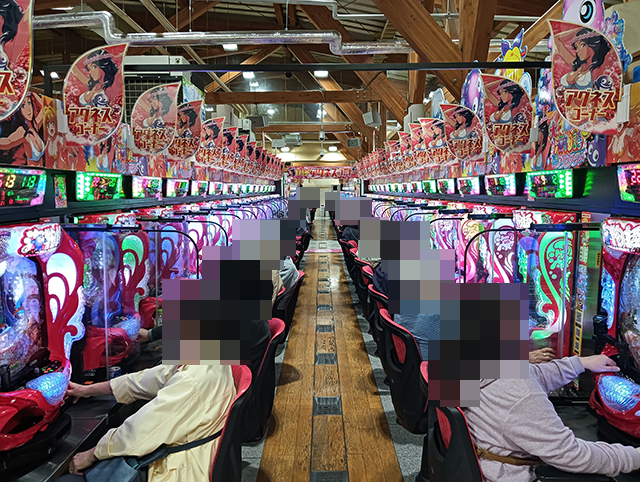 パチンコも大勢のプレイヤーでにぎわっていた。