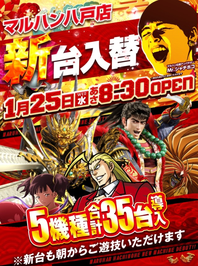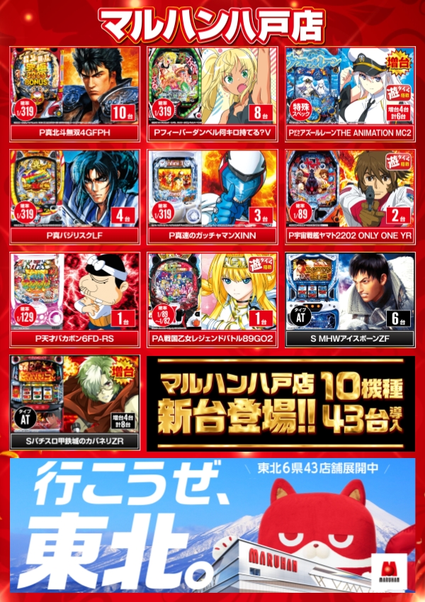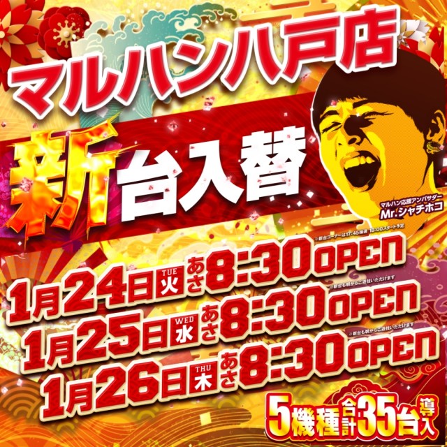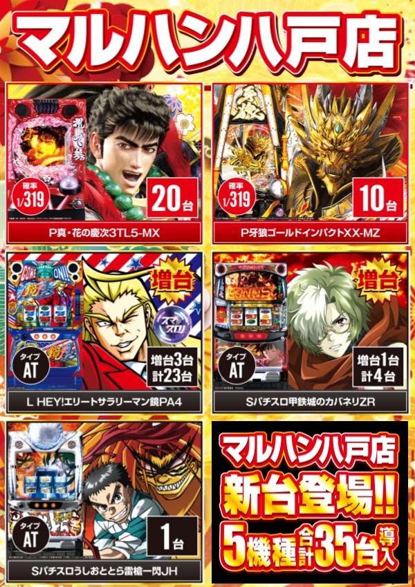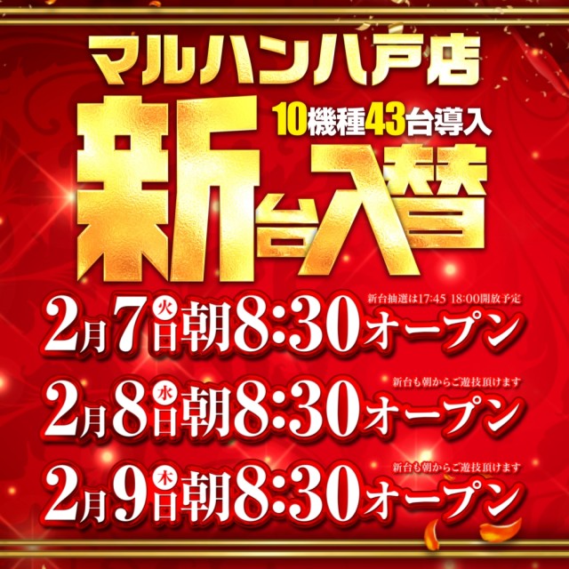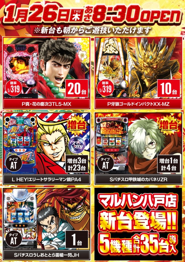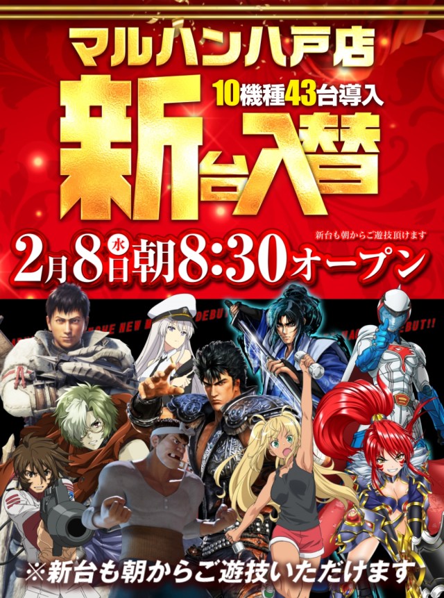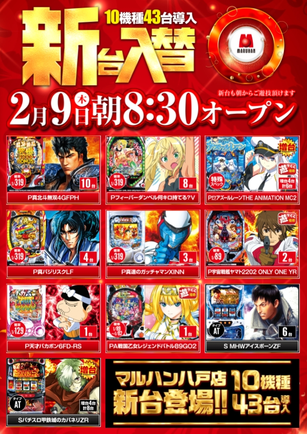本日朝8時30分開店【新台入替】10機種43台導入予定