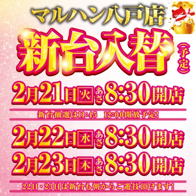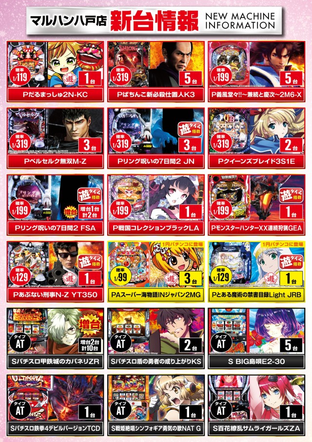 本日朝8時30分開店【新台入替】18機種39台導入予定