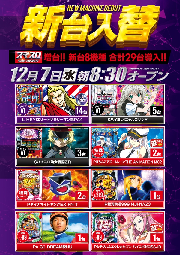 【本日】新台入替初日(予定)新台開放18時予定!