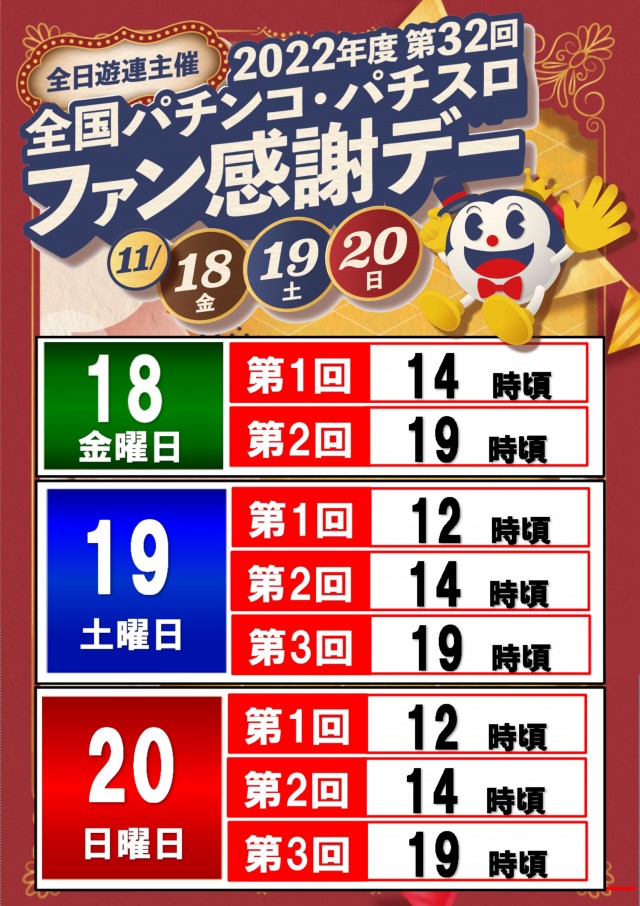 本日より3日間、全国パチンコ・パチスロファン感謝デー開催!!