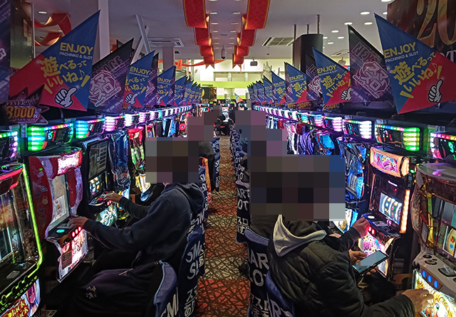 11月30日、青森県八戸市にある「大東パチンコ」へと向かった。今回の取材は、「アルティメットスロット」だ。笑顔で遊技を楽しんでいるプレイヤーが多く、大きな盛り上がりをみせていた。