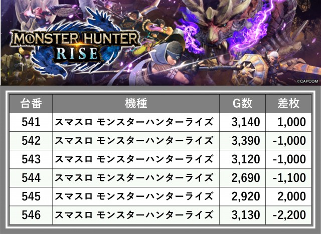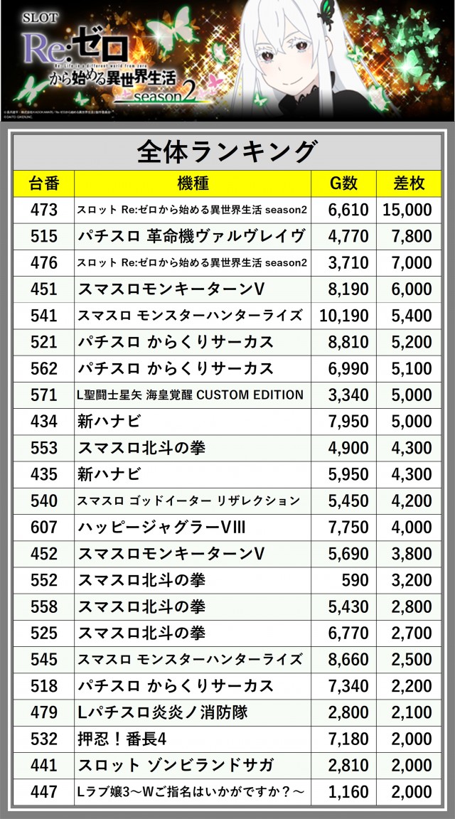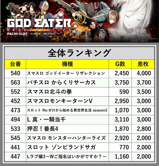 厳選された取材対象機種をはじめ、その他スロット全体から好記録が飛び出した!プレイヤーが楽しんだ1日を下記データにて振り返ってみて欲しい。