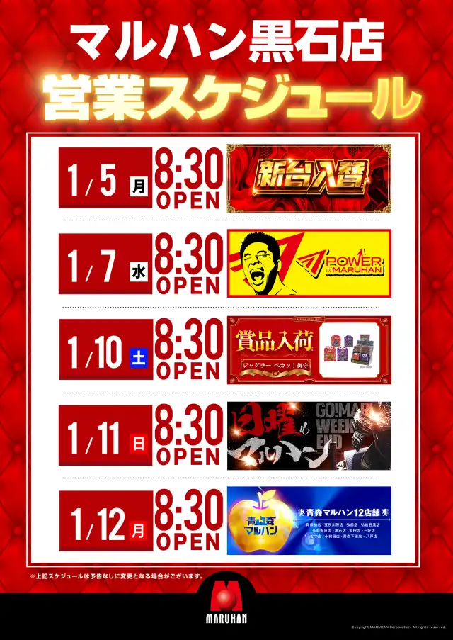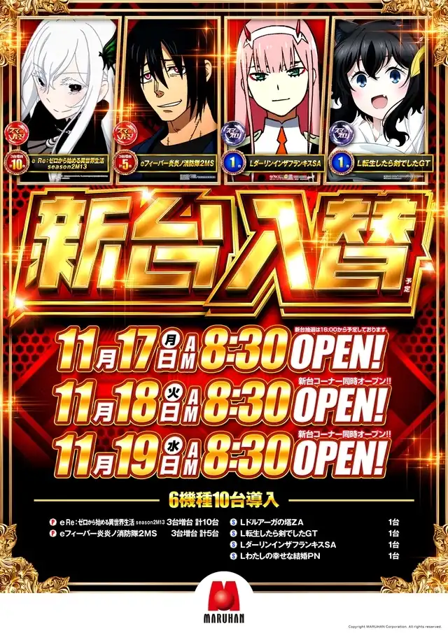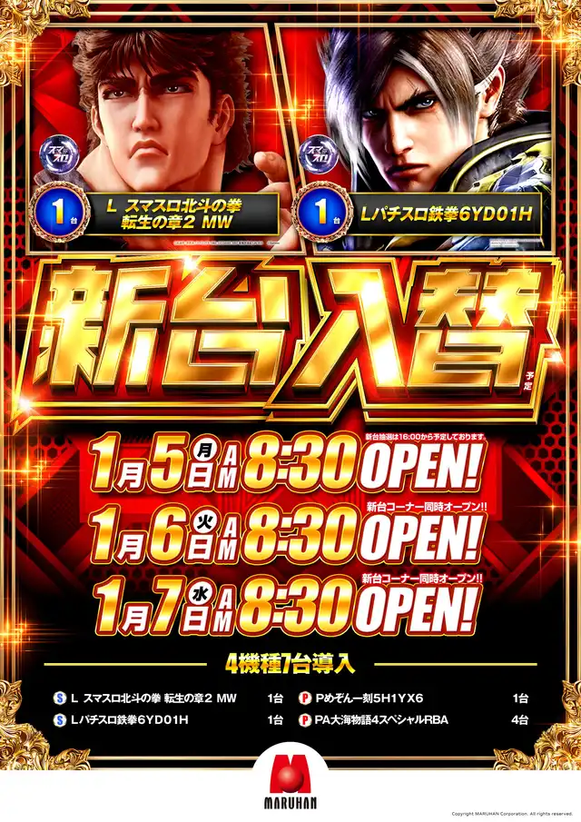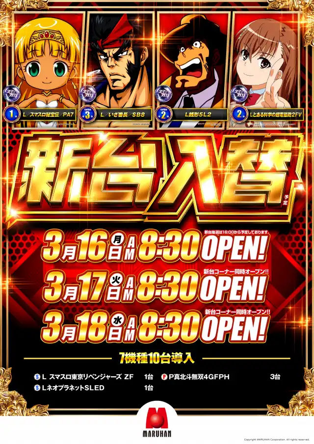 本日 3月6日(月) 新台入替(予定)朝8:30オープン