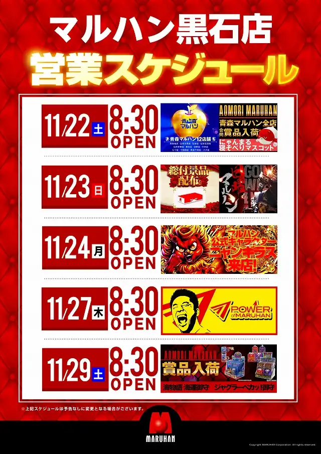 本日 3月20日(月) 新台入替(予定)朝8:30オープン