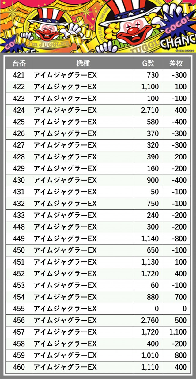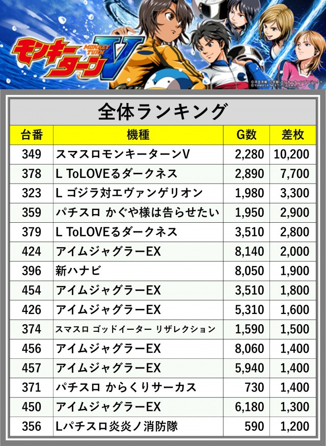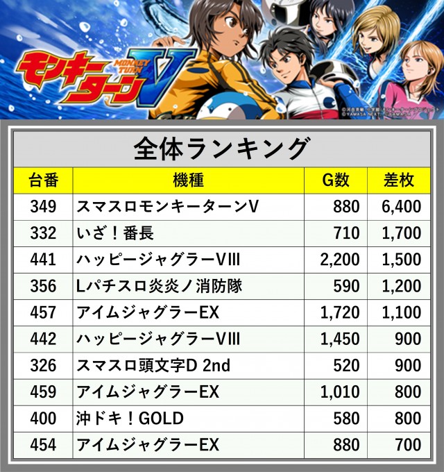厳選された取材対象機種をはじめ、その他スロット全体から好記録が飛び出した!プレイヤーが楽しんだ1日を下記データにて振り返ってみて欲しい。