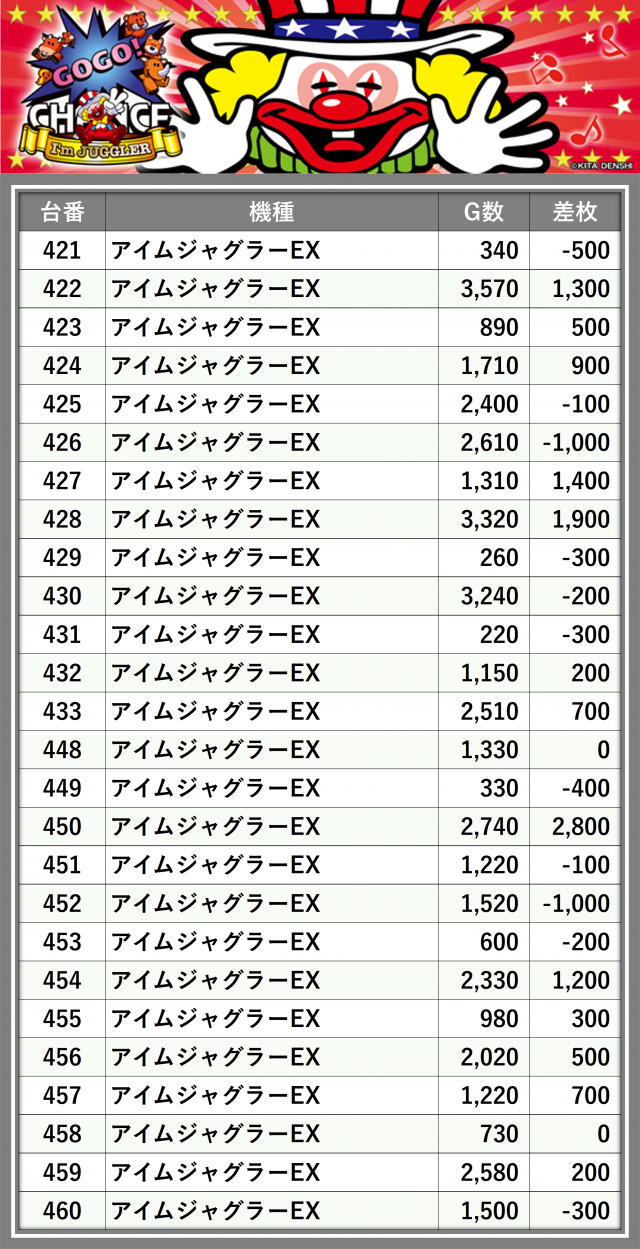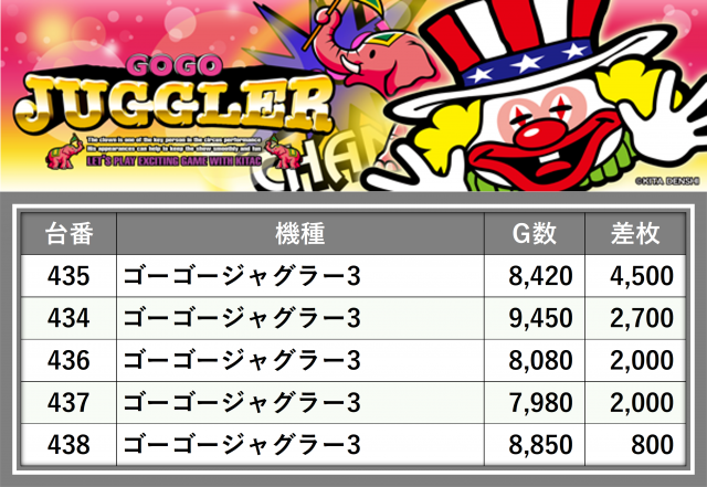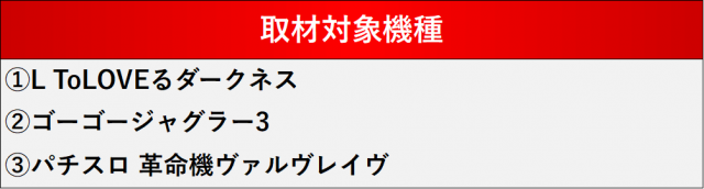 厳選された取材対象機種をはじめ、その他スロット全体から好記録が飛び出した!プレイヤーが楽しんだ1日を下記データにて振り返ってみて欲しい。