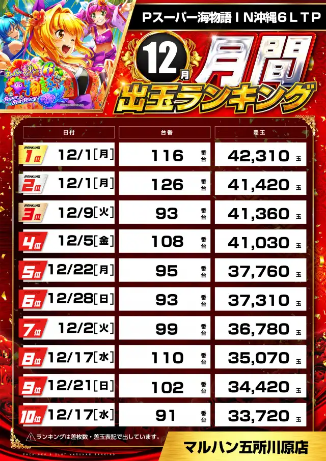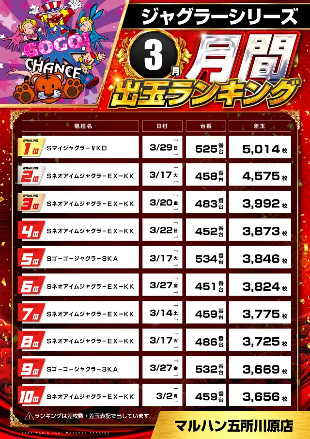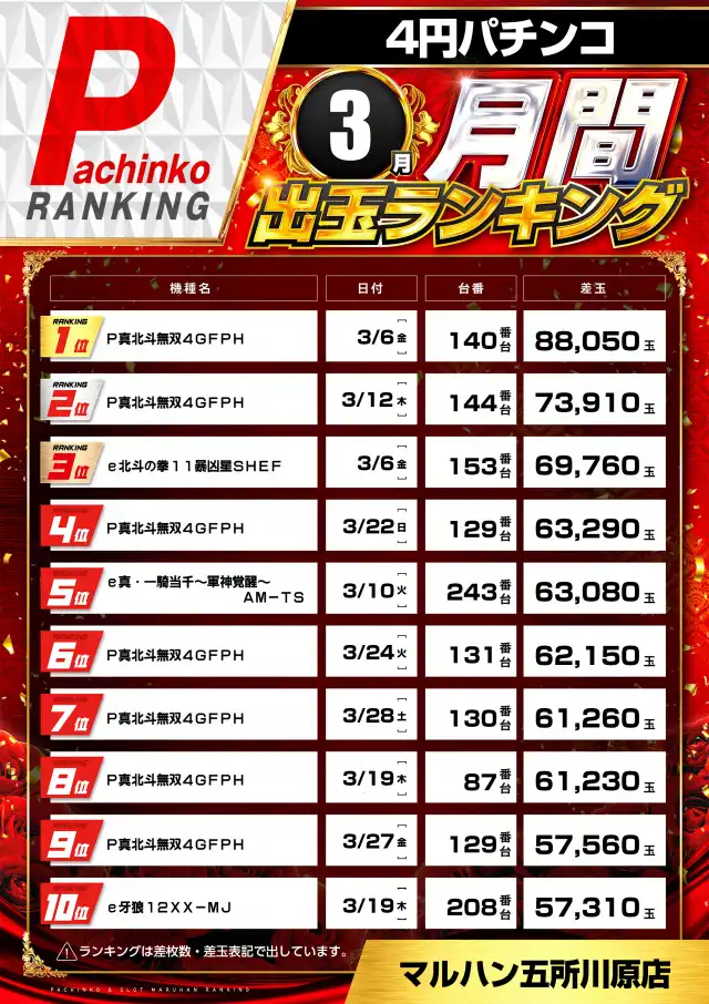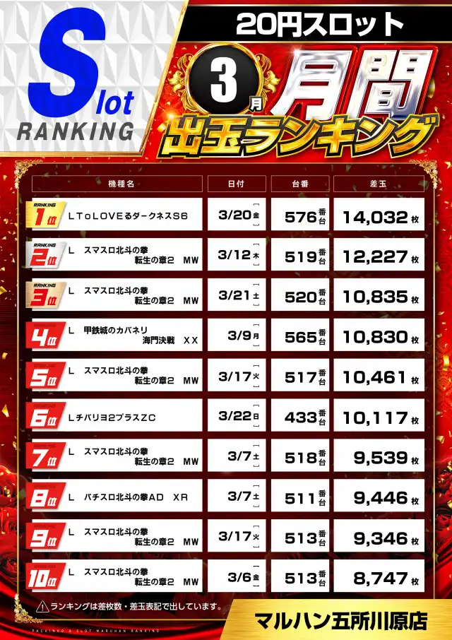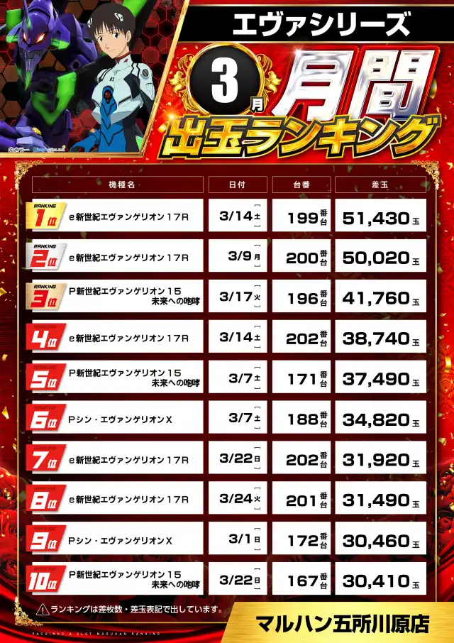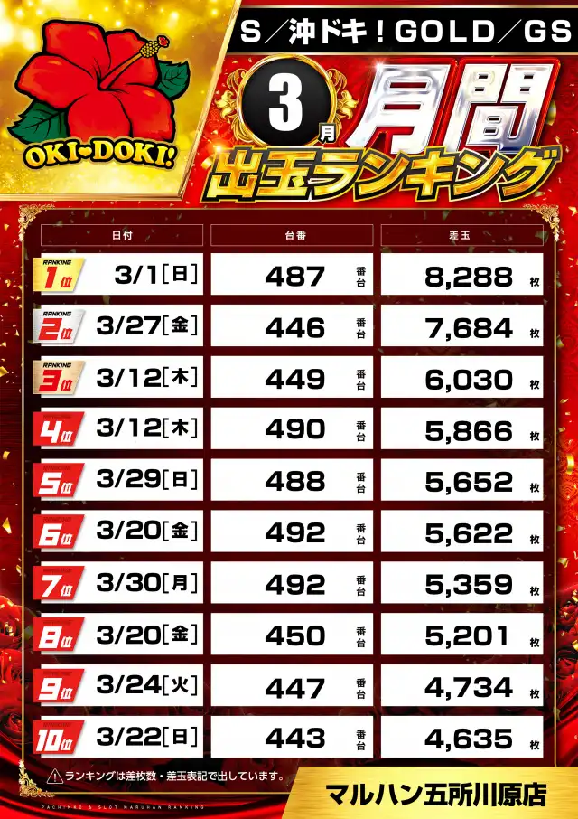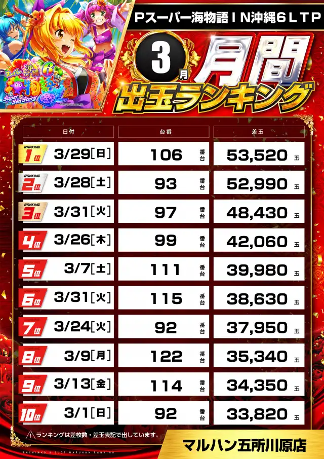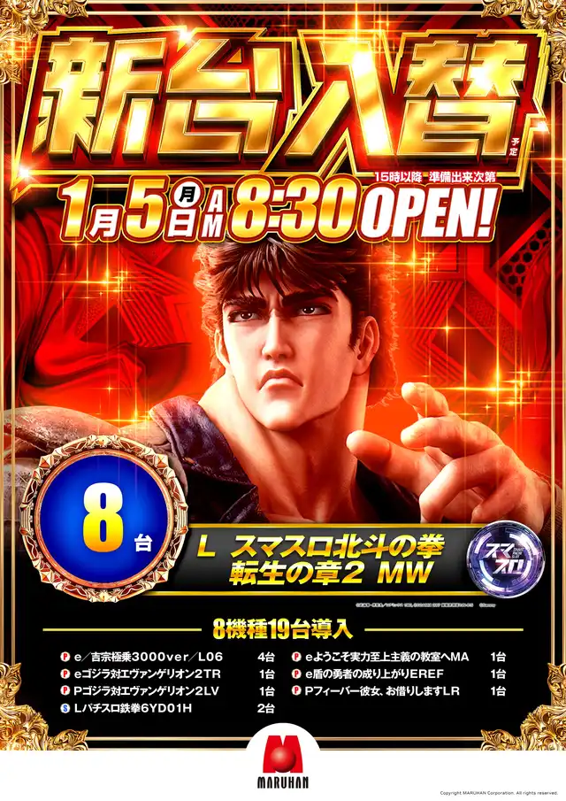 本日3/6(月)新台入替予定 新台:9機種22台導入予定