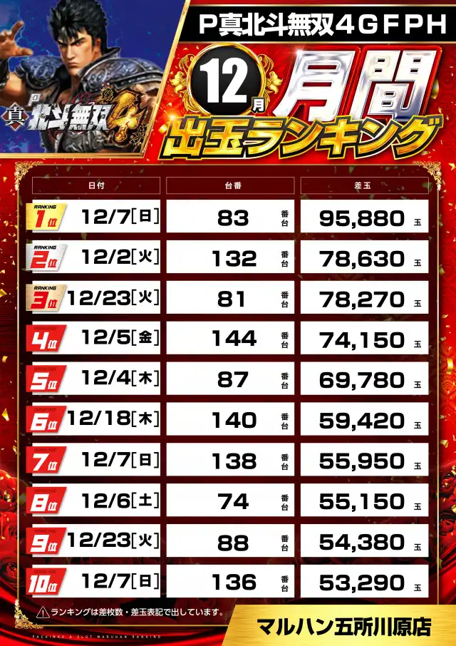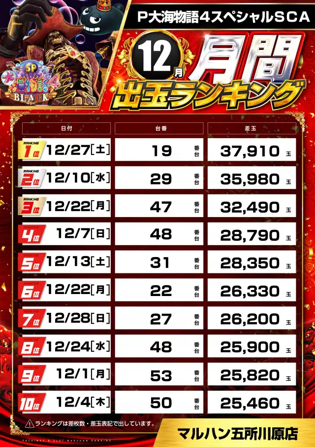 1位 12月22日(月) 2位 12月29日(月) 3位 12月31日(水)