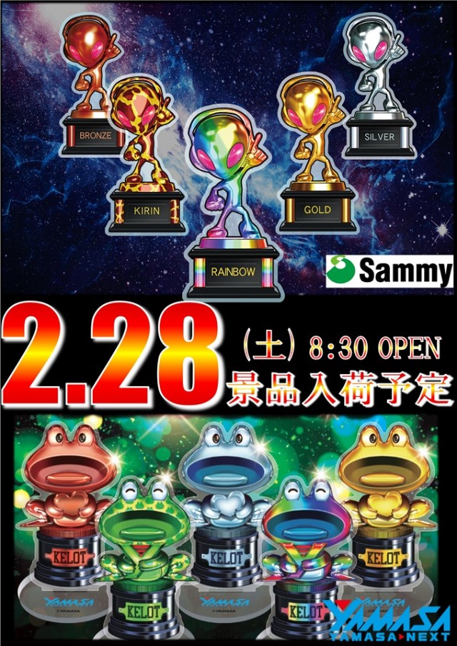 2月28日 サミー・山佐景品入荷予定&ポイント景品交換😊