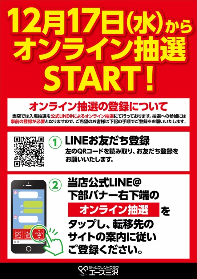 抽選時間 8:00~ 当店の判断により抽選時間を変更する場合がございます。予めご了承下さい。 |