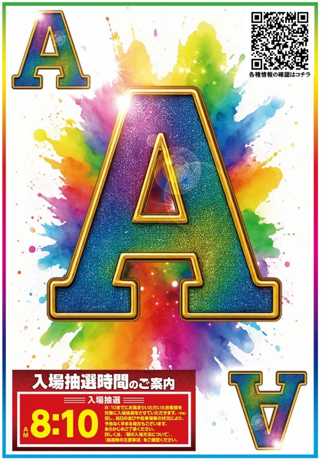 抽選時間 8:00~ 当店の判断により抽選時間を変更する場合がございます。予めご了承下さい。 |