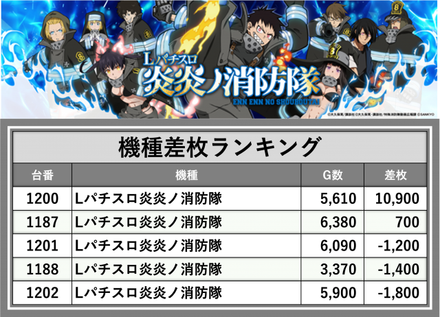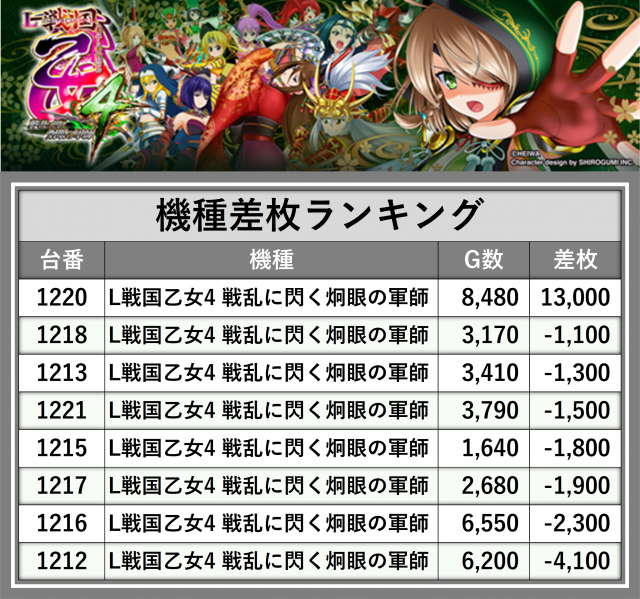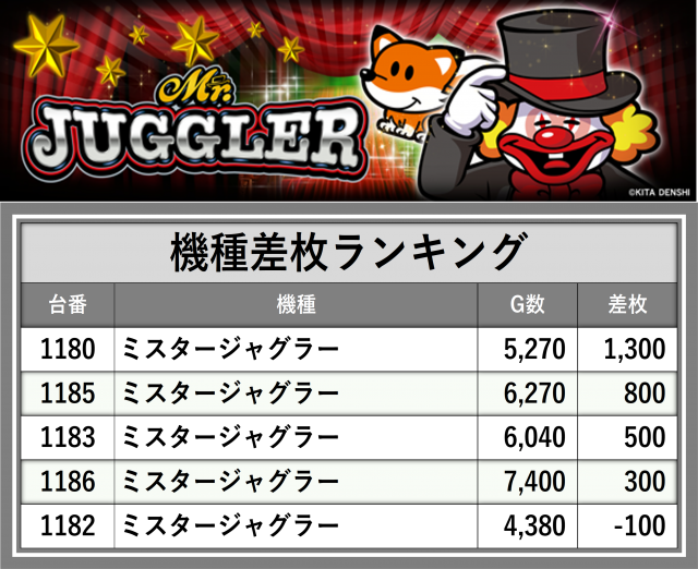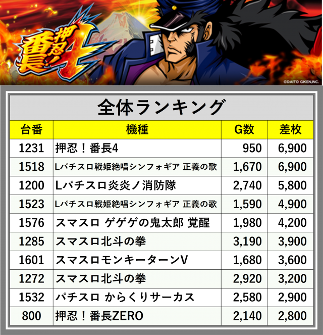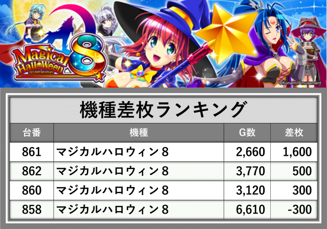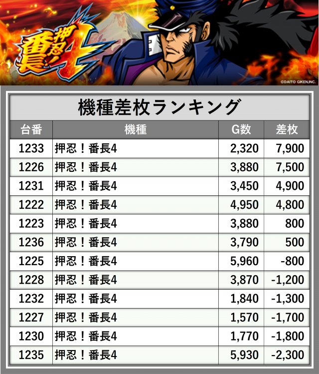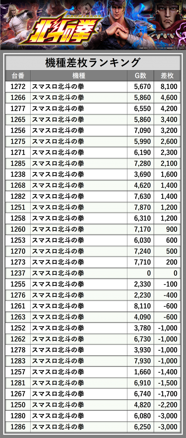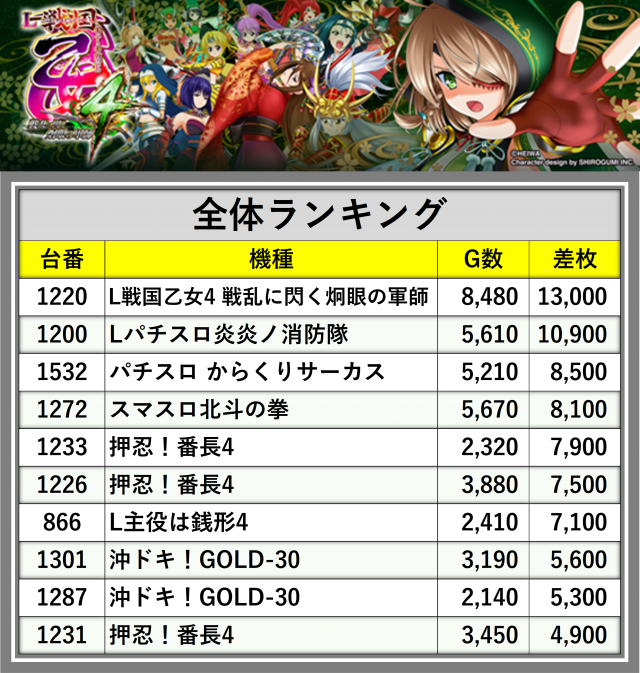 ※差枚数順に掲載しています