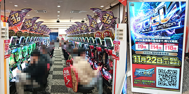 11月22日(土)ライジング1にて、DMMぱちタウンの新感覚取材「スロセレ」を実施。