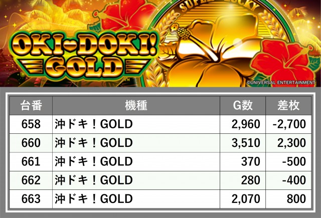 厳選された取材対象機種をはじめ、その他スロット全体から好記録が飛び出した!プレイヤーが楽しんだ1日を下記データにて振り返ってみて欲しい。