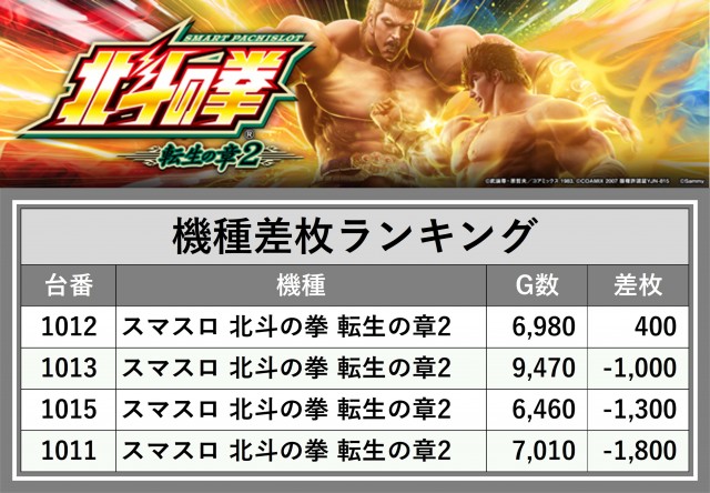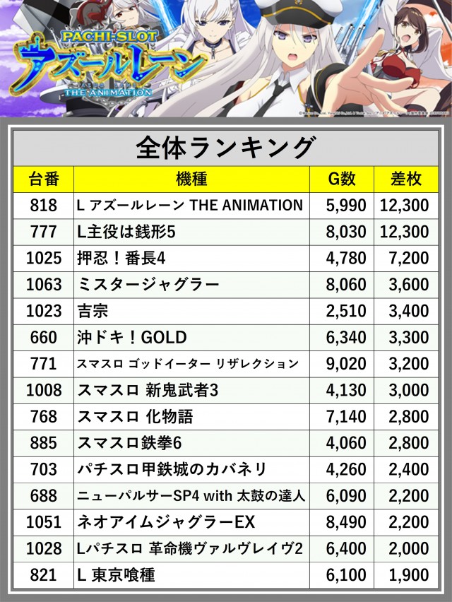 ※差枚数順に掲載しています