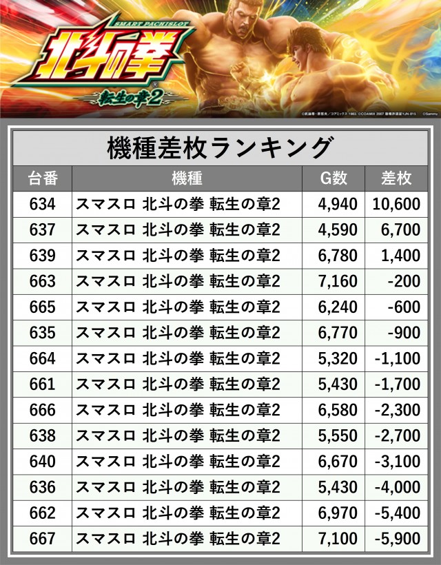 ※差枚数順に掲載しています