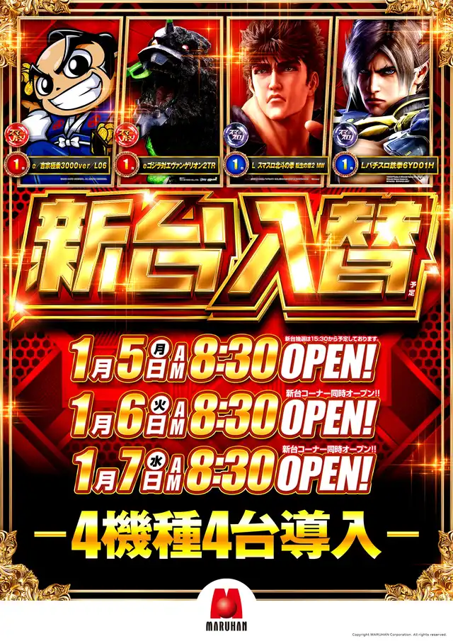 青森柏店1月23日(月)新台入替(予定)