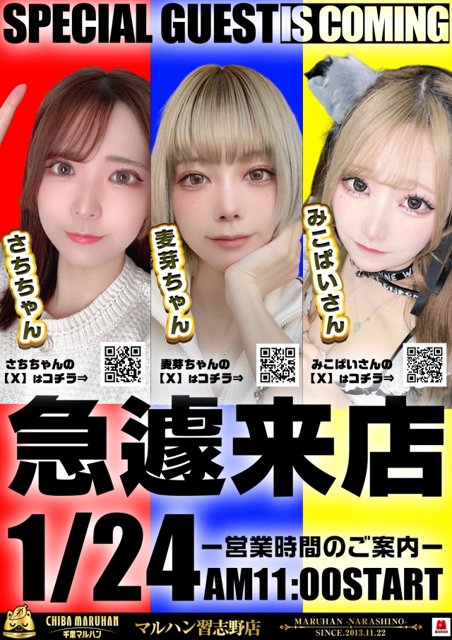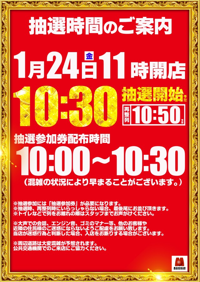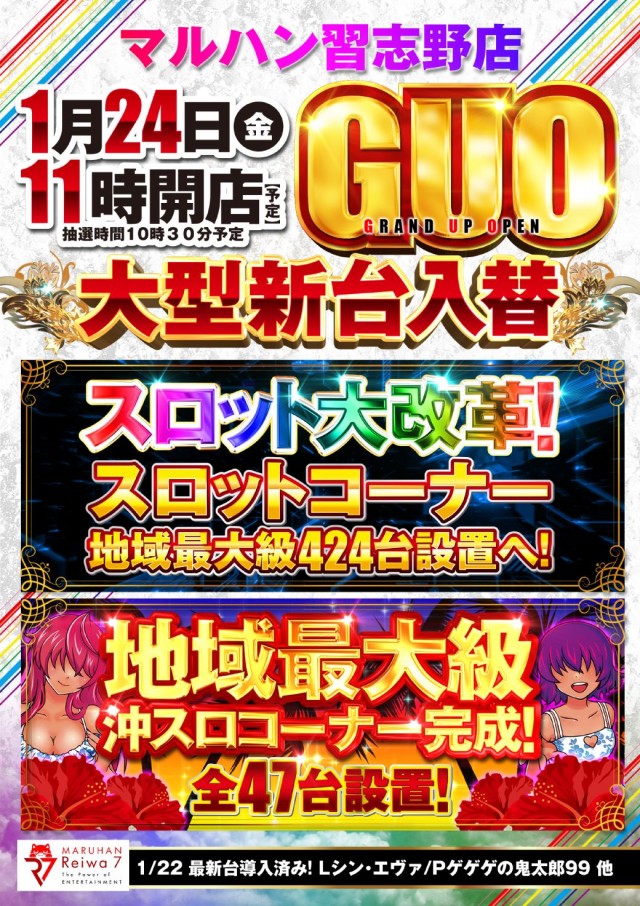 1月24日(金)スロット大改革!全424台へ!11時開店!