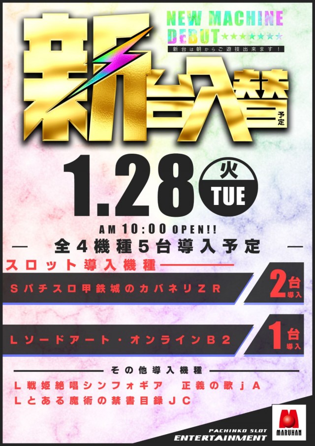 ✨1月28日(火)新台入替!スロット増台済!全424台へ!✨
