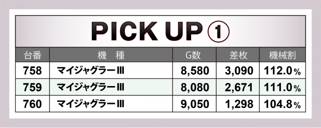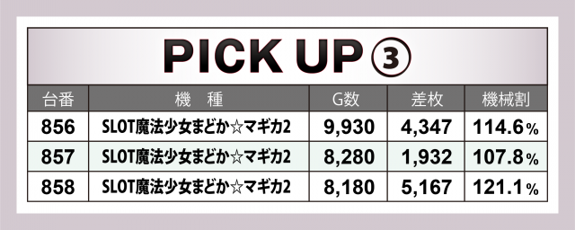 まずは20スロの結果から。最初に優秀30台PICK UPに注目したいが、この30台の差枚数は+2千枚台が3件の他、+3千枚以上がほとんどだった。後述する横並び好況スポット以外で目立ったのは『押忍!番長3』で、万枚突破台と併せて2台トータルで2万3千枚超を達成!