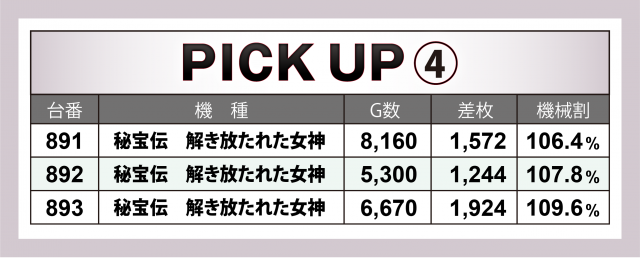 今回、20スロではトータル差枚で+70,824枚・4パチの取材対象では+37,330発となり、両翼揃った快勝に終わった。前述したように、12/29に実施された「英雄」取材でも大勝利を収めており、そちらを合わせると「ヒーローズレポート」は4回実施で無傷の4連勝。習志野でプレイするなら同店で間違いないだろう。