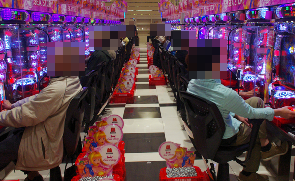 4円パチンコでは海物語シリーズが大盛況となっており、たくさんのプレイヤーが充実した表情をみせていた。