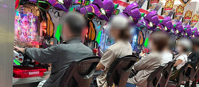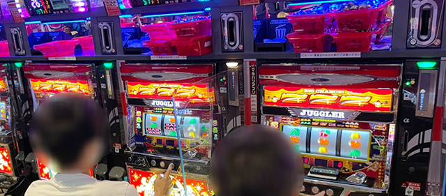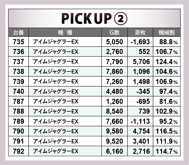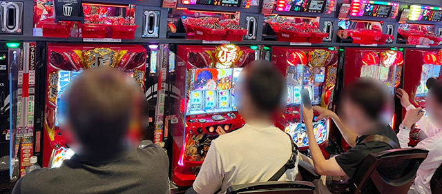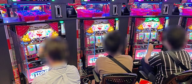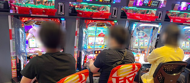 『マイジャグラーV』『アイムジャグラーEX』では、合計5か所の横並びスポットを確認できた。いずれの台もじっくりと遊技されるだけでなく、右肩上がりのグラフを描いていたのが顕著だった。残念ながらプラス差枚に届かなかった台こそあるが、遊技していたファン各々がしっかりと手ごたえを感じていたのは間違いない。