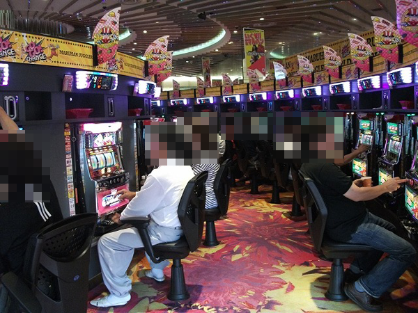 ボーナスタイプも盛況で、すべてのシリーズ機を合わせた設置台数が104台という、地域最大級の規模を誇るジャグラーシリーズにも満足そうなプレイヤーも確認している。