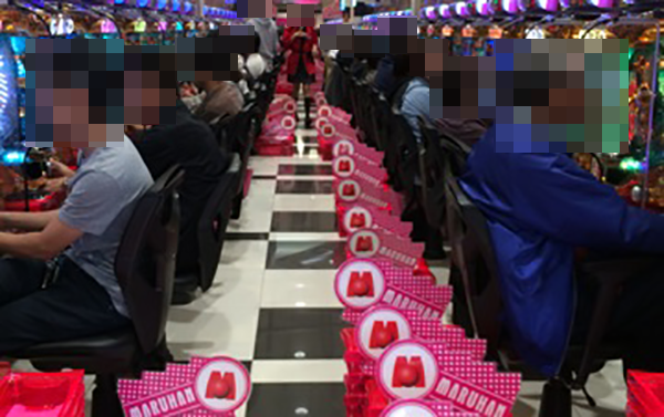 定番の海物語シリーズも、空き台がほとんど見当たらないほどに大盛況。