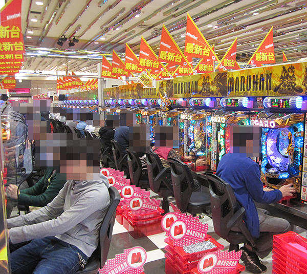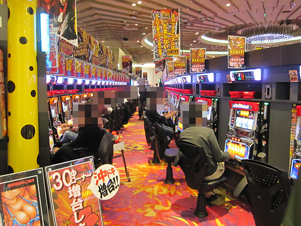 14時を過ぎる頃になると、4円パチンコでは新台の「CR牙狼 魔戒ノ花」と「CR大海物語3スペシャル」がほぼフル稼働と大盛況。