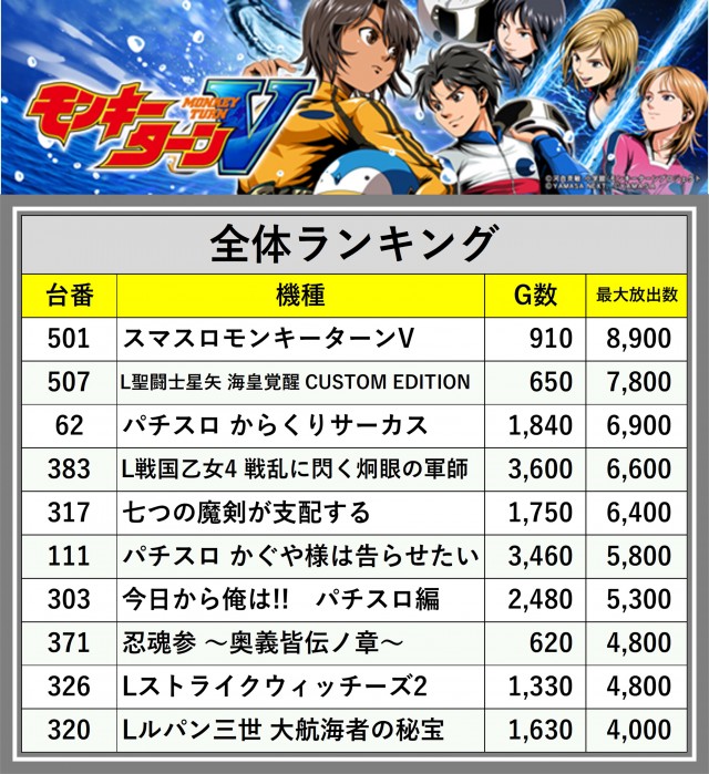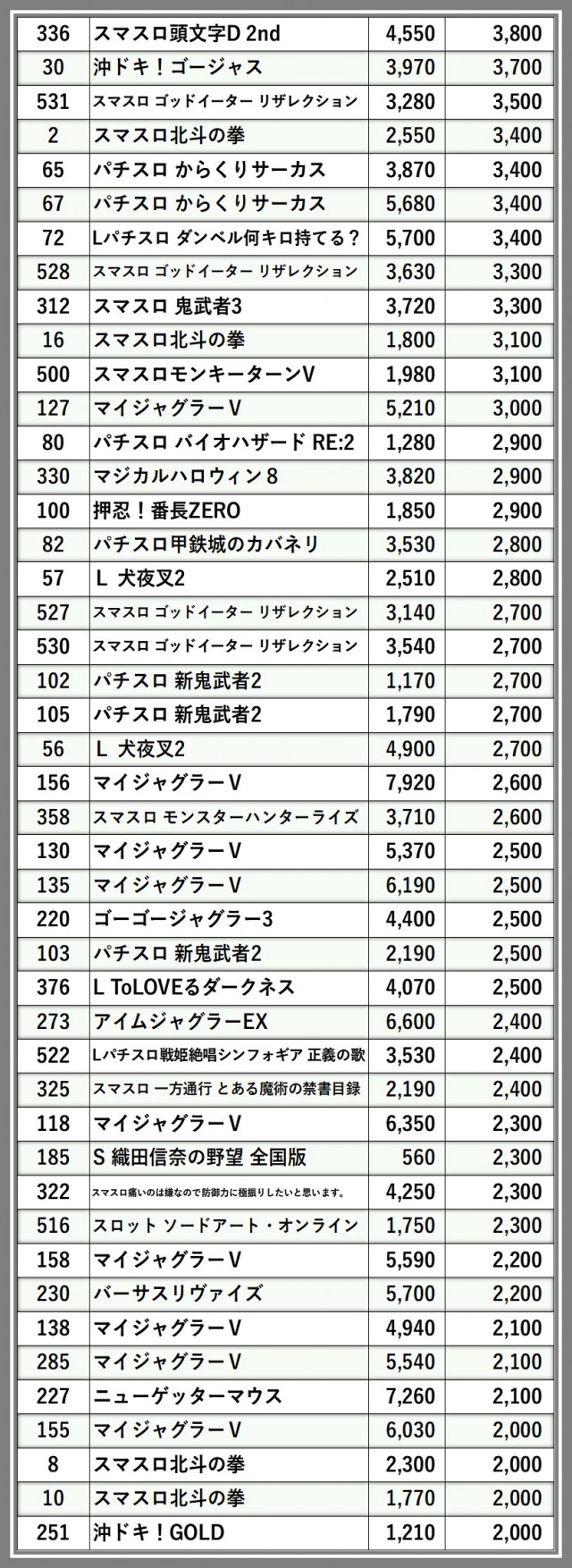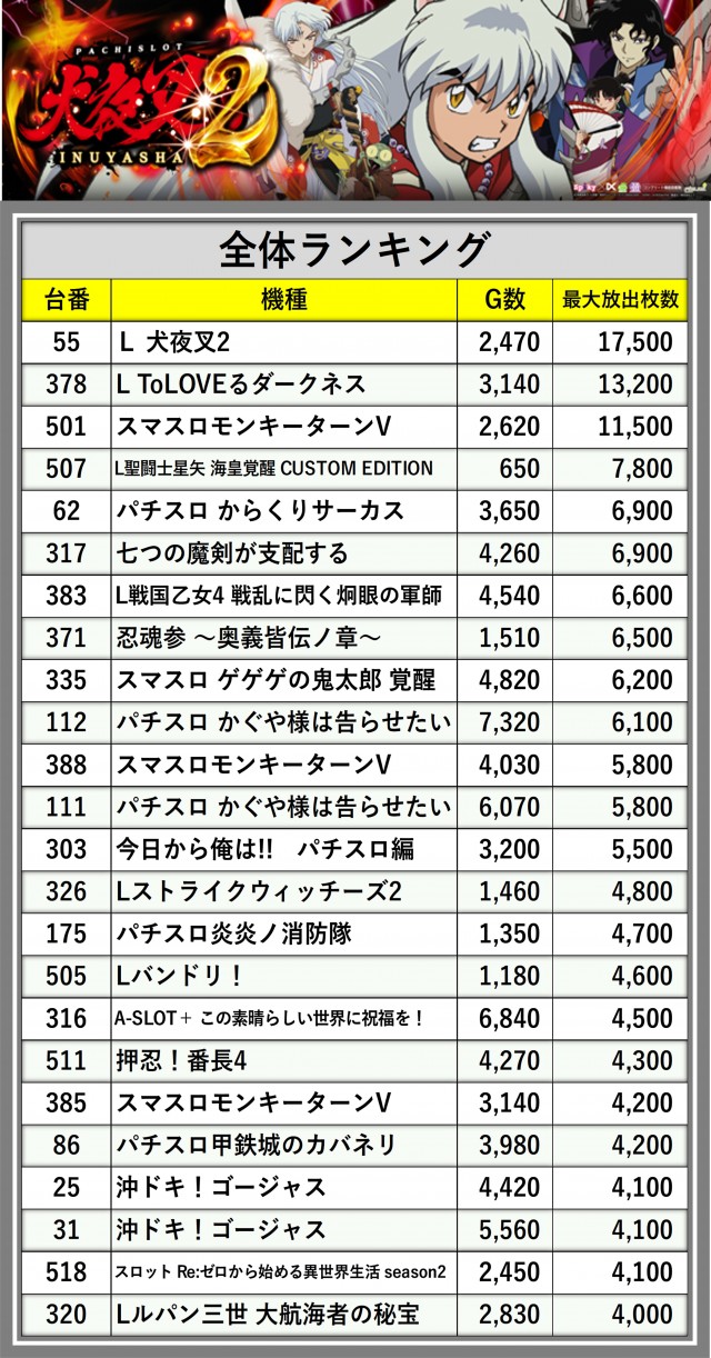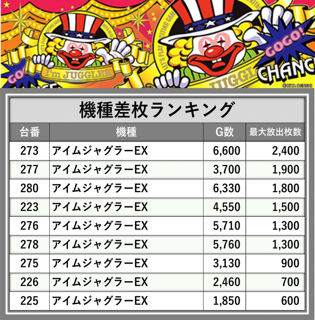 厳選された取材対象機種をはじめ、その他スロット全体から好記録が飛び出した!プレイヤーが楽しんだ1日を下記データにて振り返ってみて欲しい。