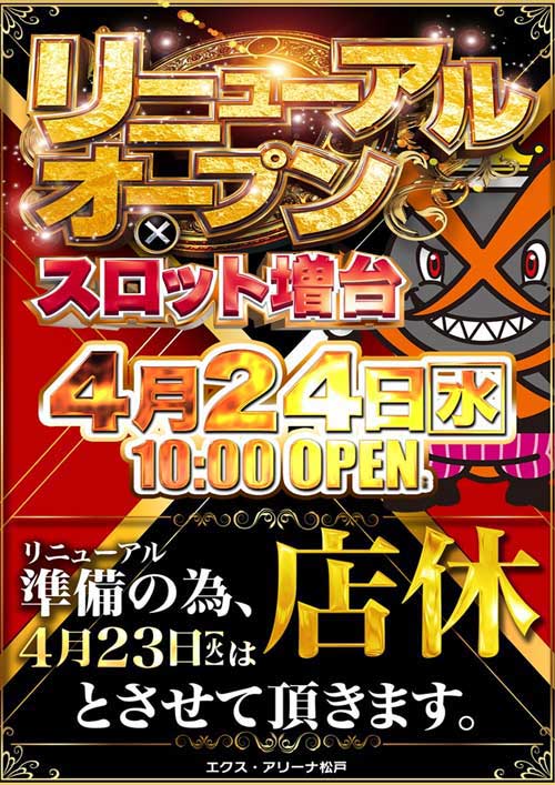 おかげさまで、エクス・アリーナ松戸店は 4月にグランドオープンより