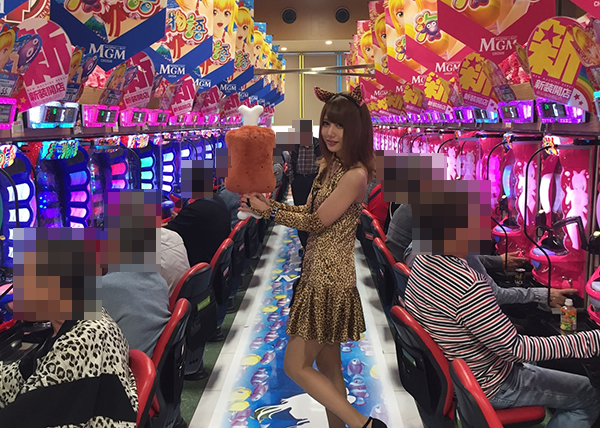 ジャグラーシリーズをはじめとしたボーナスタイプも人気があって、大勢のお客様が遊技を満喫しているといった印象を受けました。