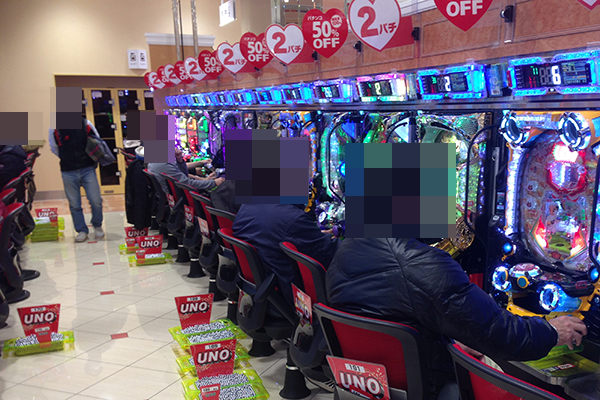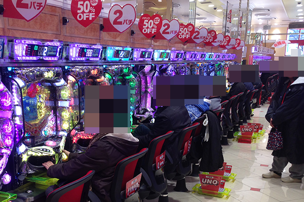 50枚/1000円パチスロはどこをみても大にぎわい。