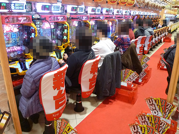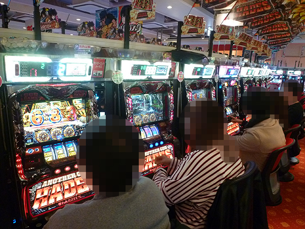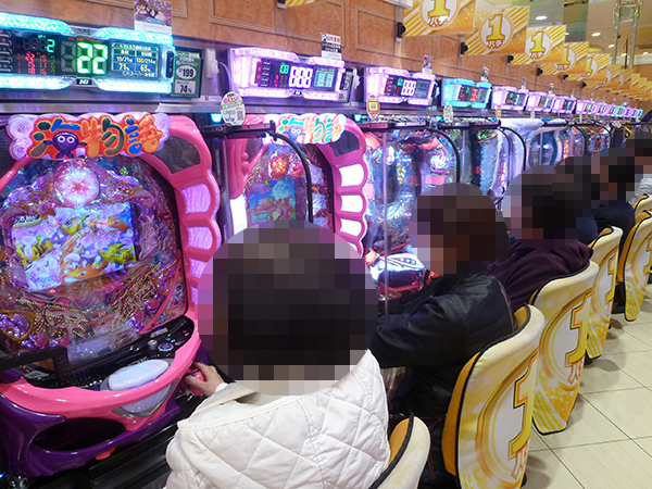 取材時、店内には既に多くのプレイヤーが集結しており、パチンコ・パチスロを問わずにぎやかな状況となっていた。