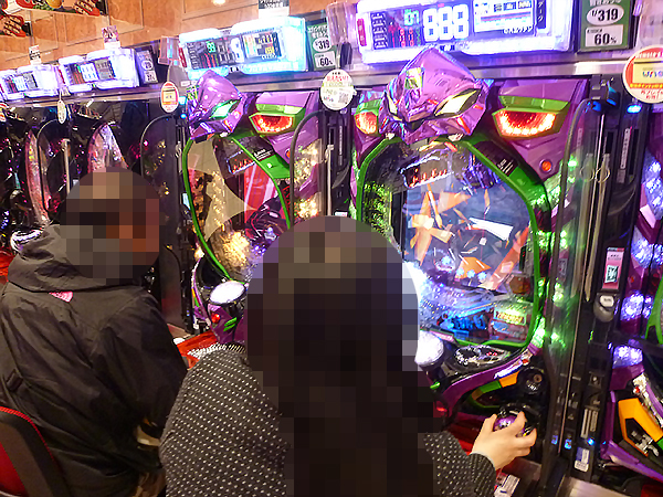 16時半ごろに500円/120玉パチンコをチェックしてみると、「CR不二子〜Lupin The End〜」や「CRヱヴァンゲリヲン 2018年モデル」で、機種のポテンシャルを発揮しているプレイヤーを目撃。周囲から注目を浴びていた。